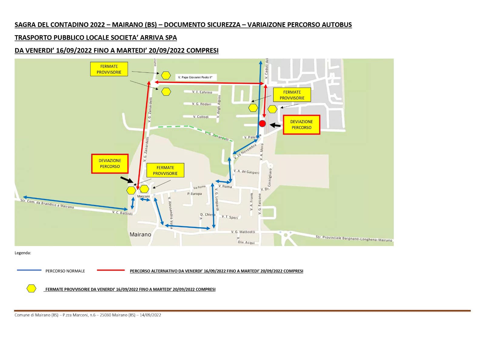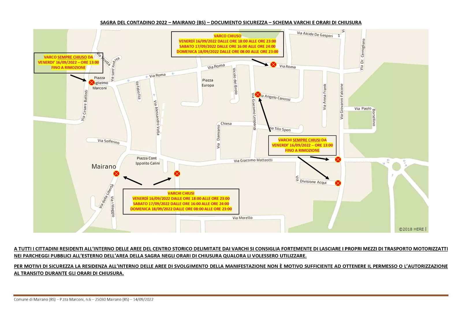 Ordinanza di regolamentazione della circolazione stradale per “Sagra del Contadino di Mairano XVI^ edizione – Anno 2022”